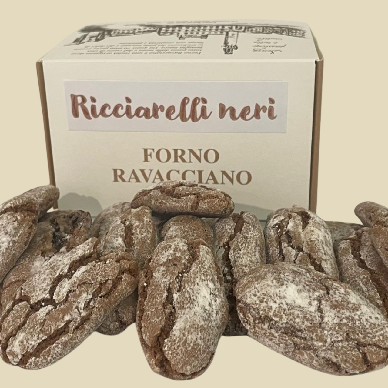 Details: In Siena, Ricciarelli are typically paired with a glass of Vin Santo, a sweet Tuscan wine. The contrast between the wine’s sweetness and the tender texture of the cookies creates a perfect balance that enhances the flavor of both. In this cocoa version, the classic almond base is enriched with deep, dark chocolate notes, making them even more indulgent. Also perfect with coffee or tea, especially during the holiday season.