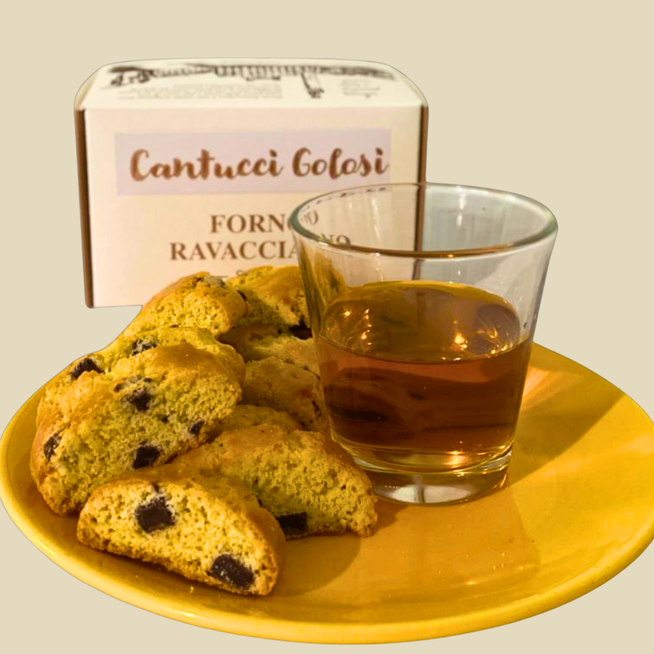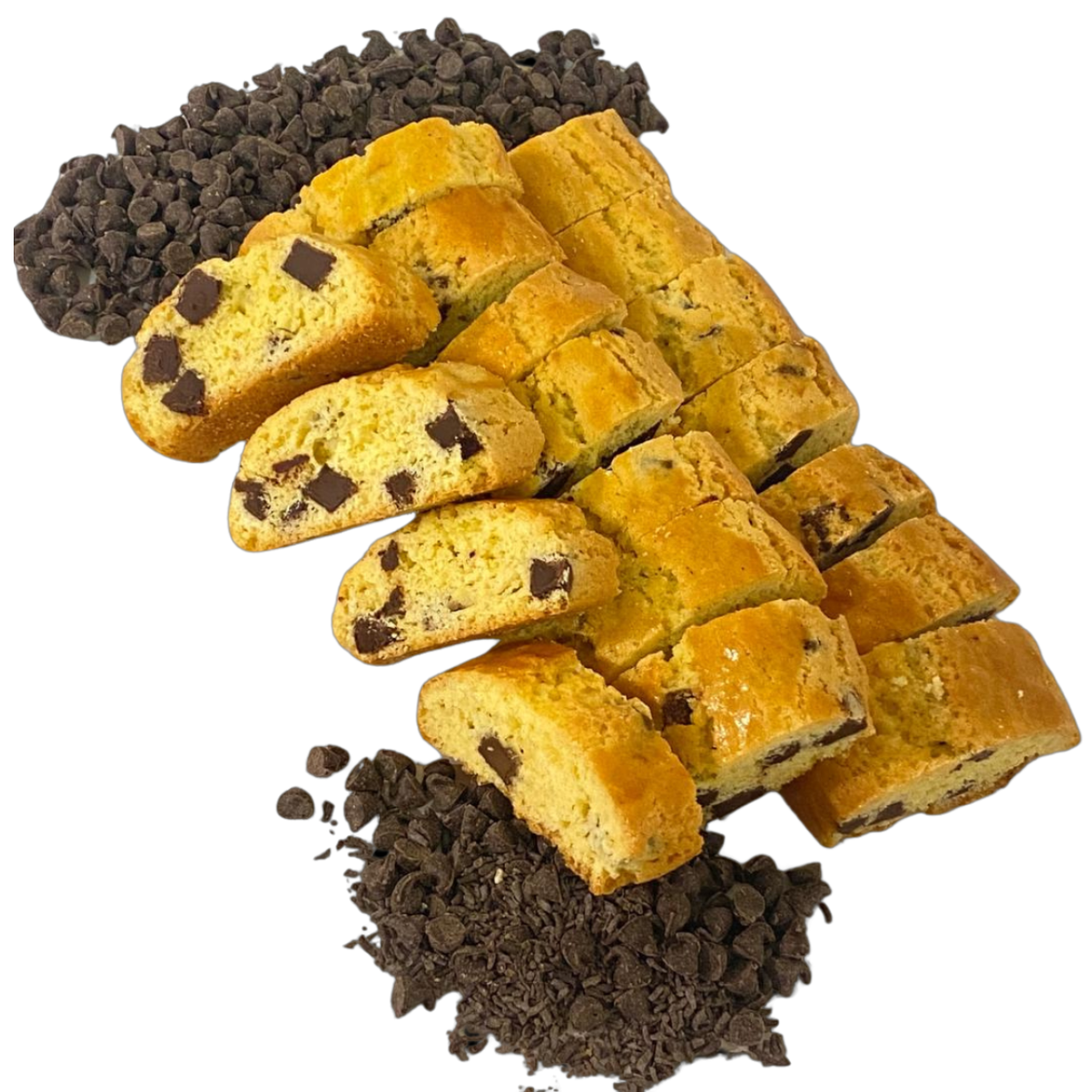 Details: In this version, chocolate chips replace the almonds, keeping the crunchy texture and adding depth of flavor to the biscuit. They can still be enjoyed with Vin Santo or other sweet fortified wines.
